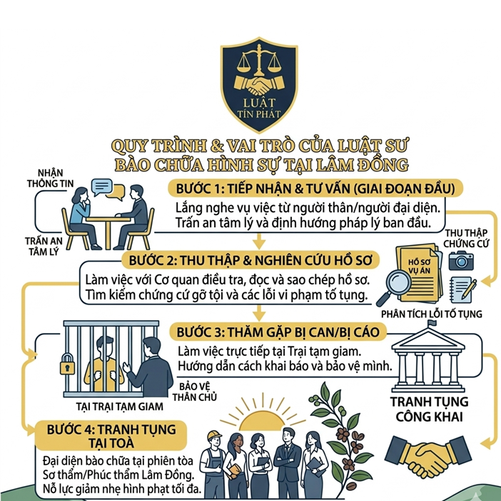 - Thăm gặp tại Trại tạm giam: Luật sư trực tiếp làm việc với bị can/bị cáo tại các trại tạm giam trên địa bàn tỉnh Lâm Đồng để hướng dẫn cách khai báo trung thực, đúng luật và giữ vững tâm lý.